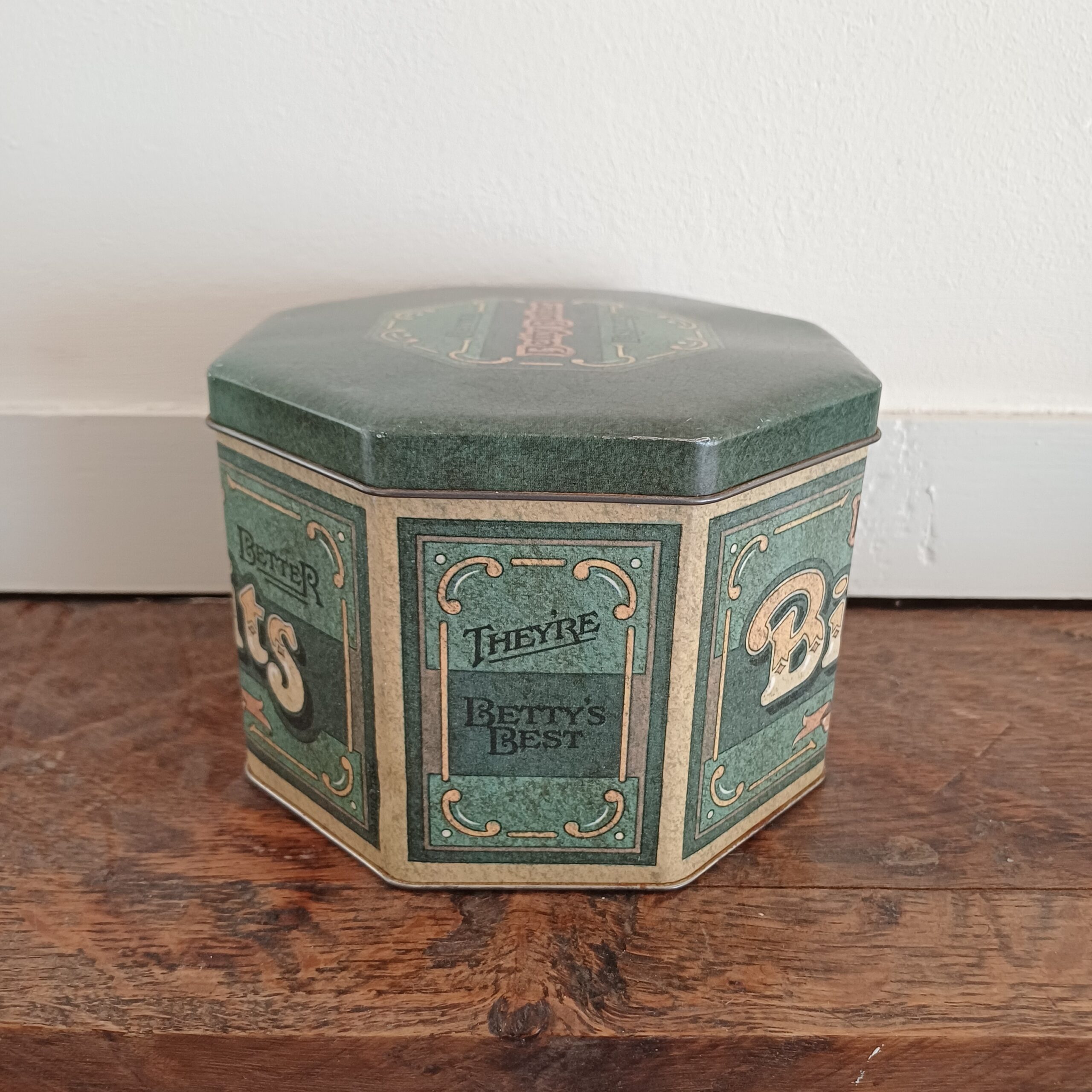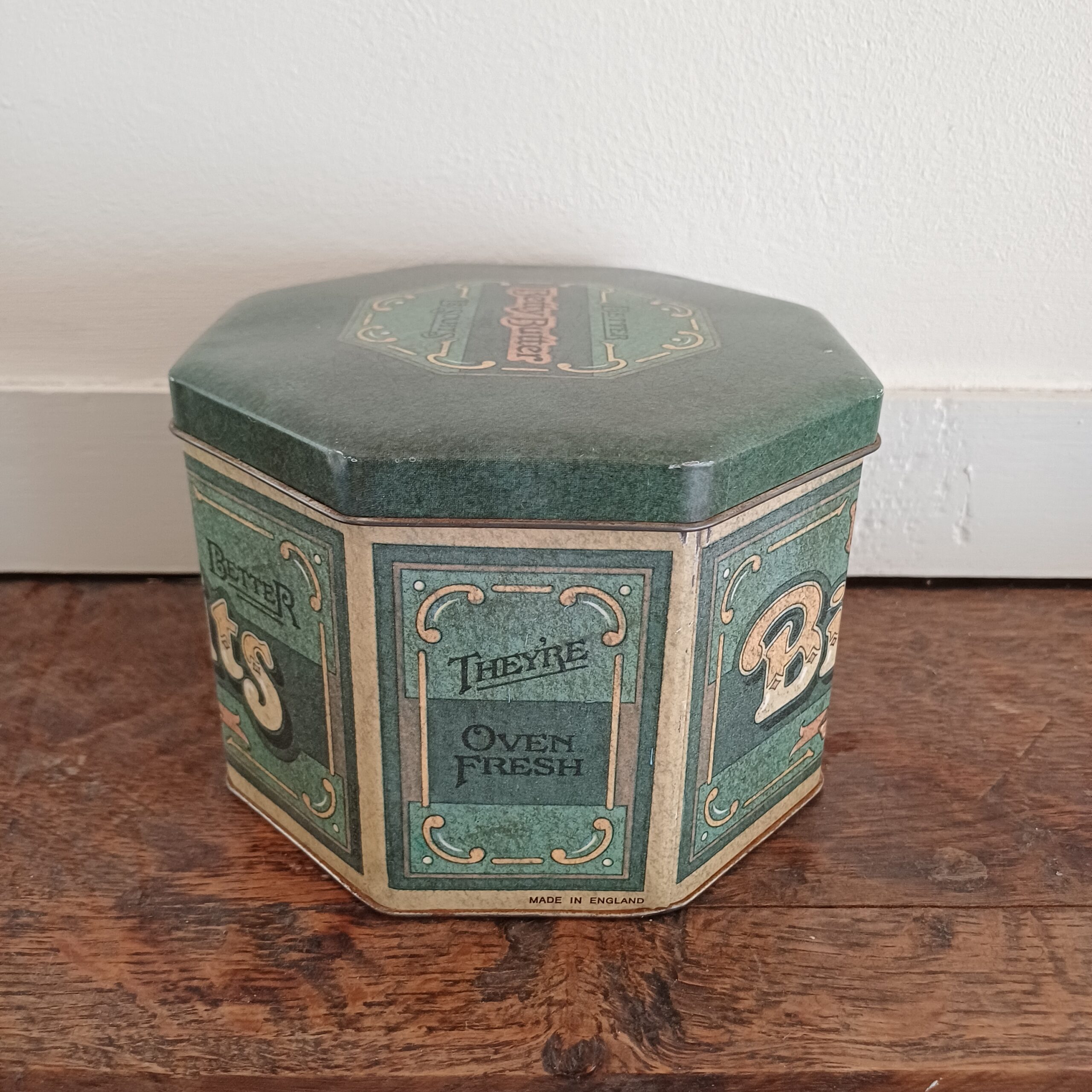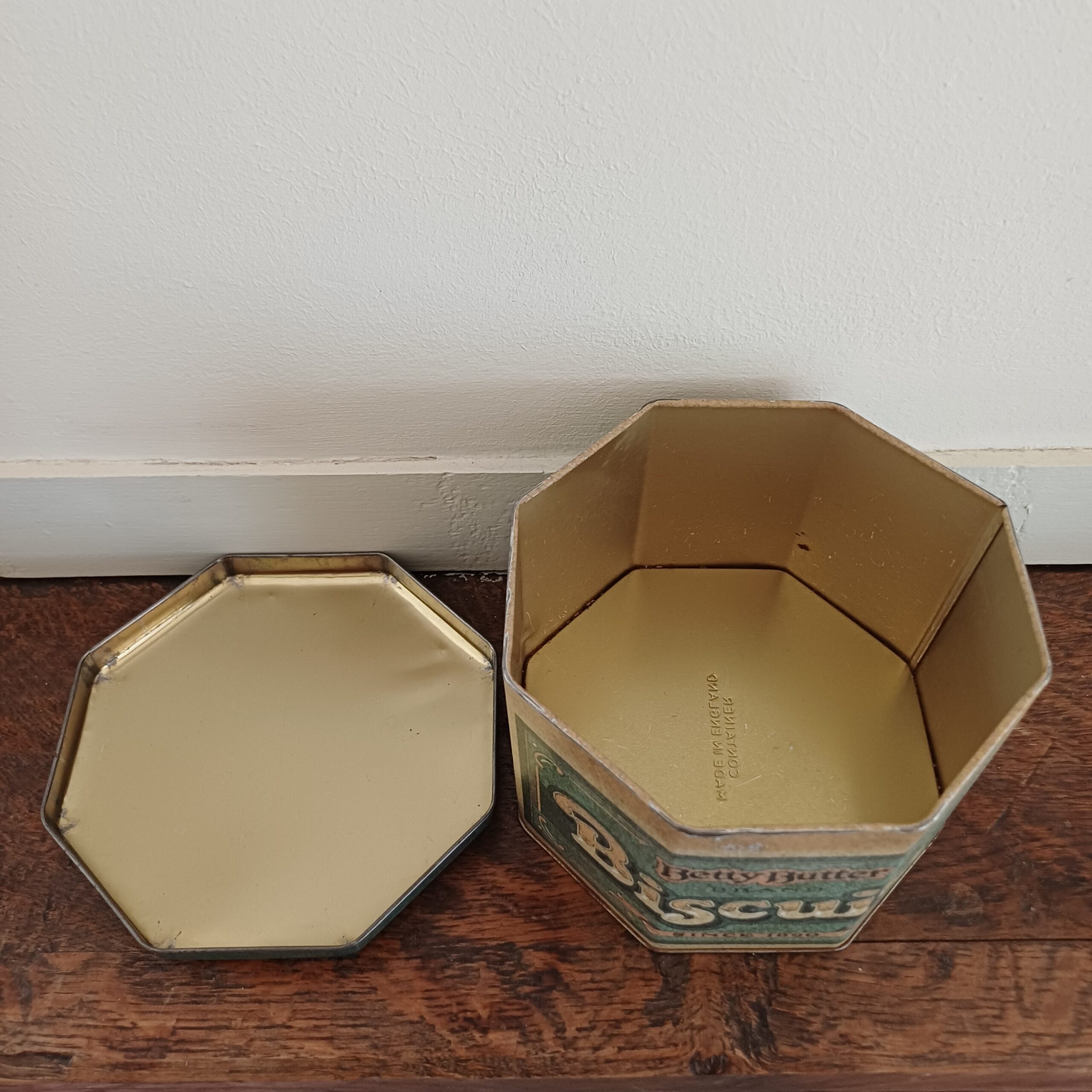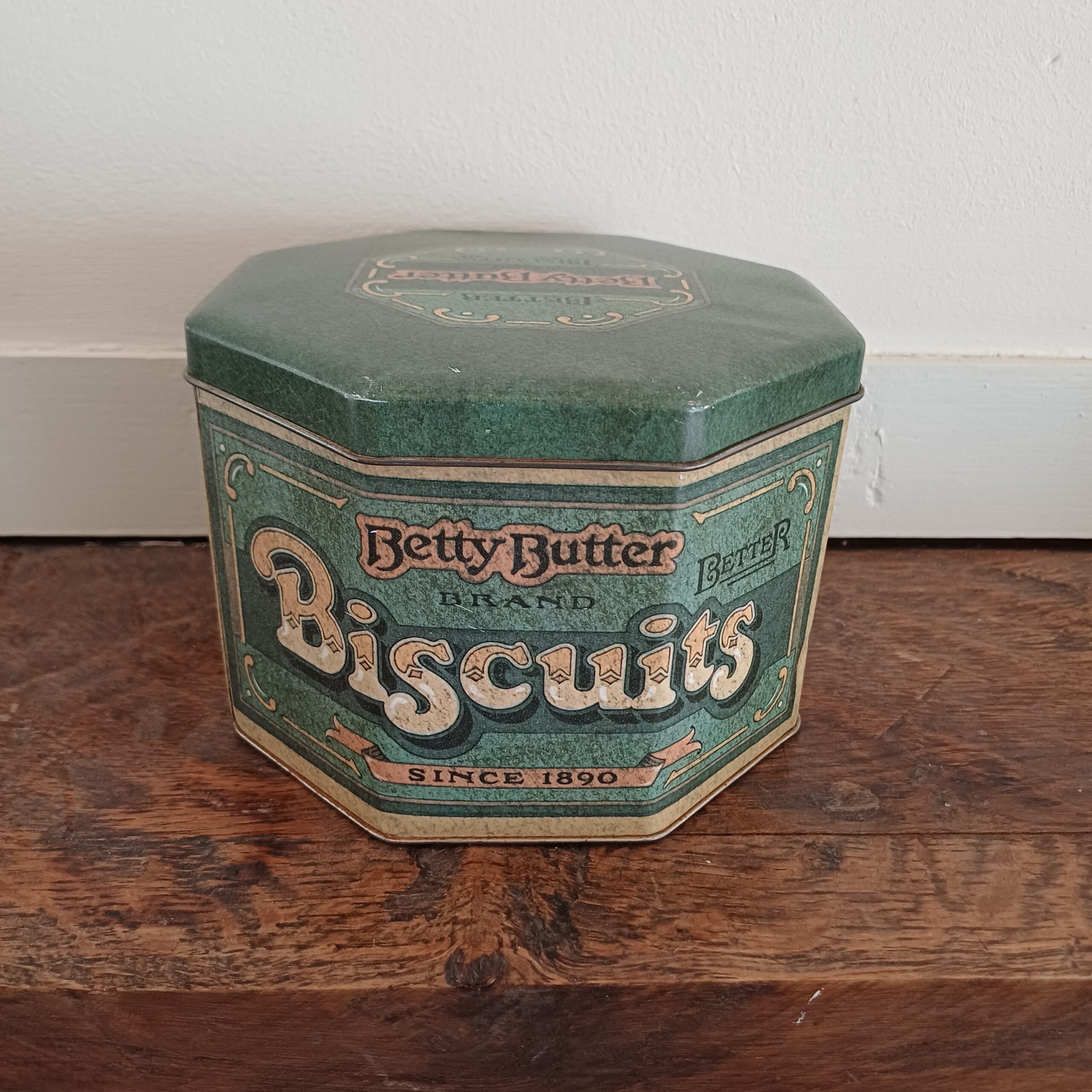 Tof vintage Betty Butter Brand biscuits blik. Made in England. Het blik heeft nog steeds een mooie, heldere kleur en is nog best heel netjes van binnen en van buiten. Mooi om ter decoratie neer te zetten, eventueel met kleine prulletjes erin.