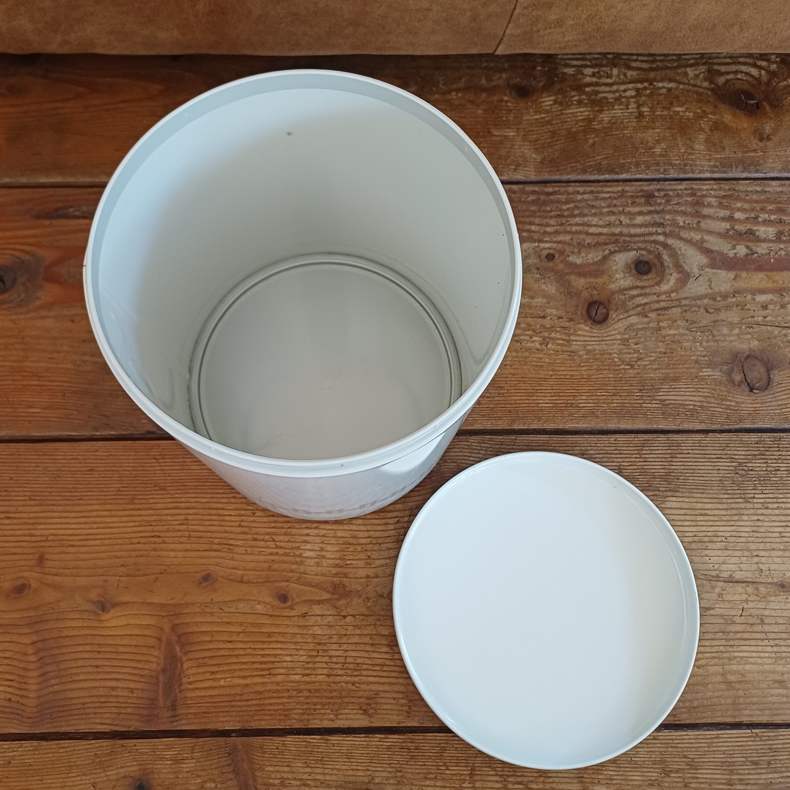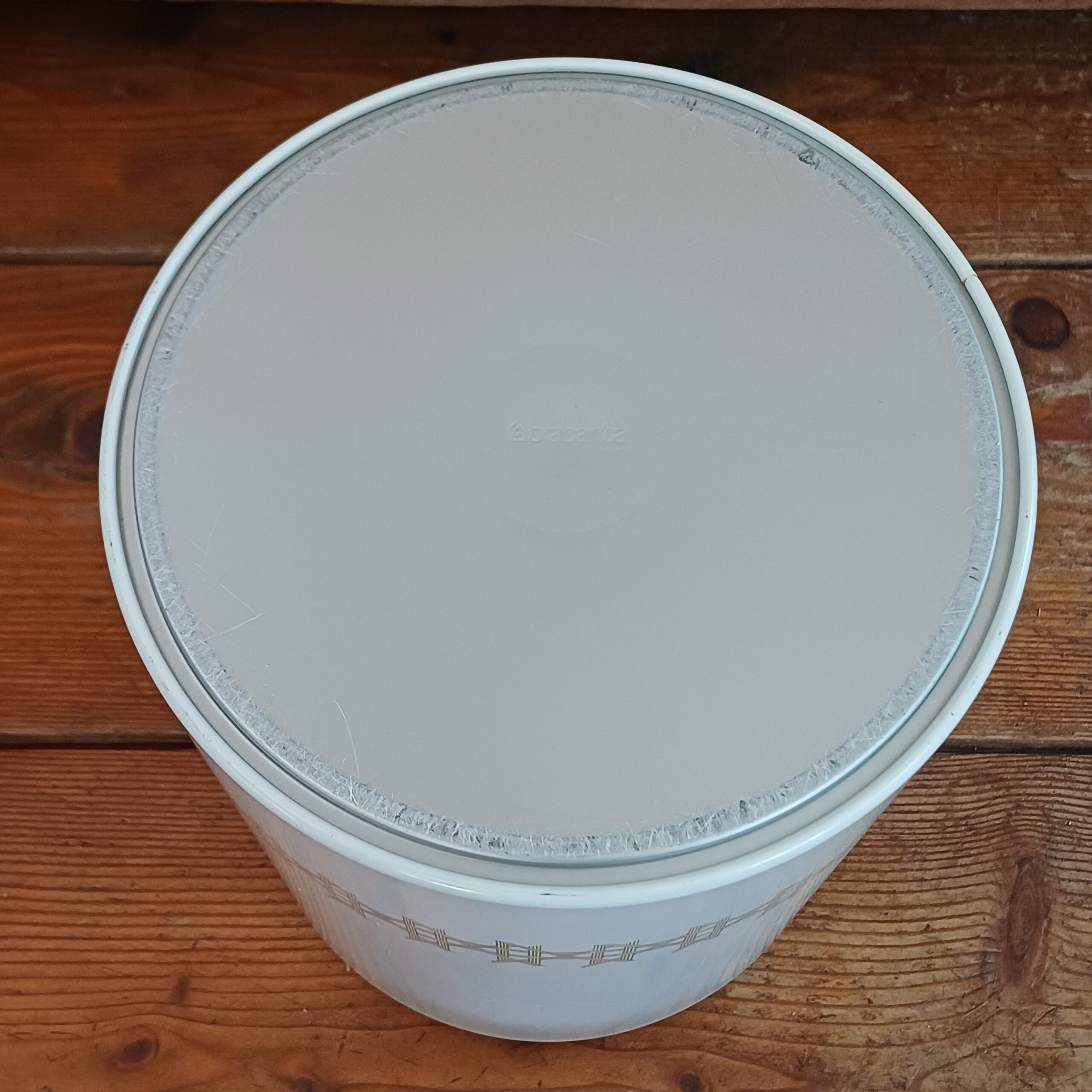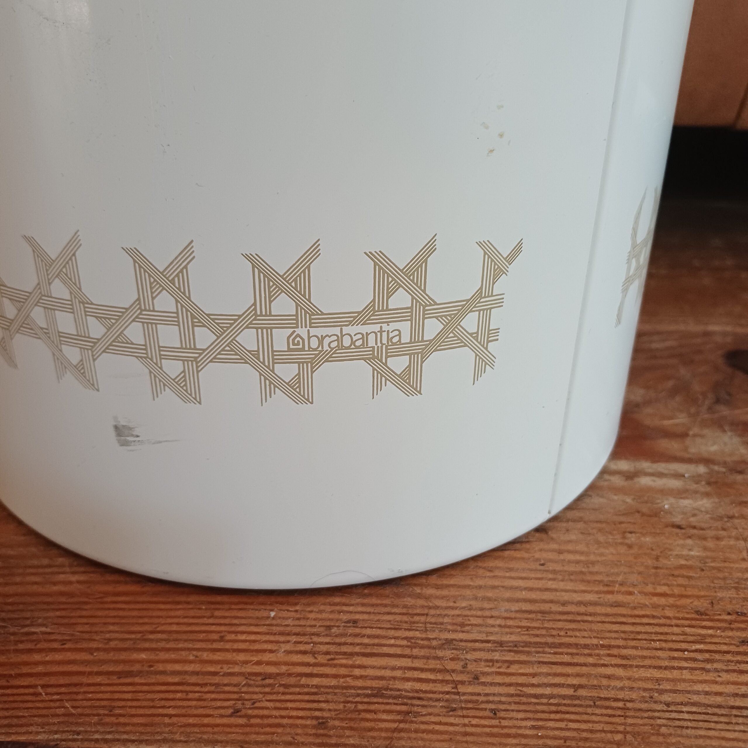 Mooi groot Brabantia blik met een decoratief patroon en wat bamboe. Het blik is 26,5 cm hoog met een diameter van 20,5 cm.