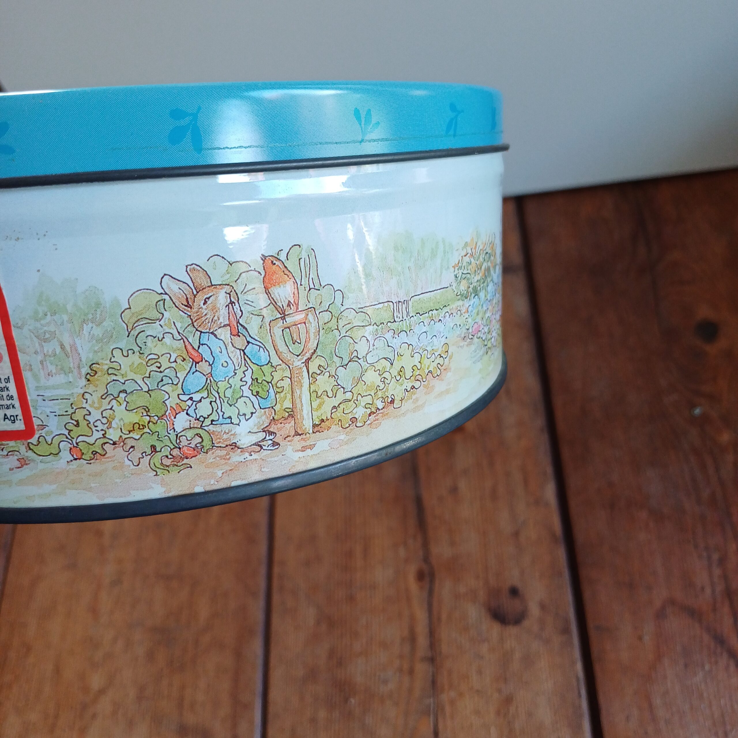 Ter gelegenheid van de 100e verjaardag van Beatrix Potter’s geliefde personage, Peter Rabbit is dit speciale blik gemaakt. Het veelkleurige koekblik toont mooie plaatjes van het beroemde konijn en is in zeer goede staat.
