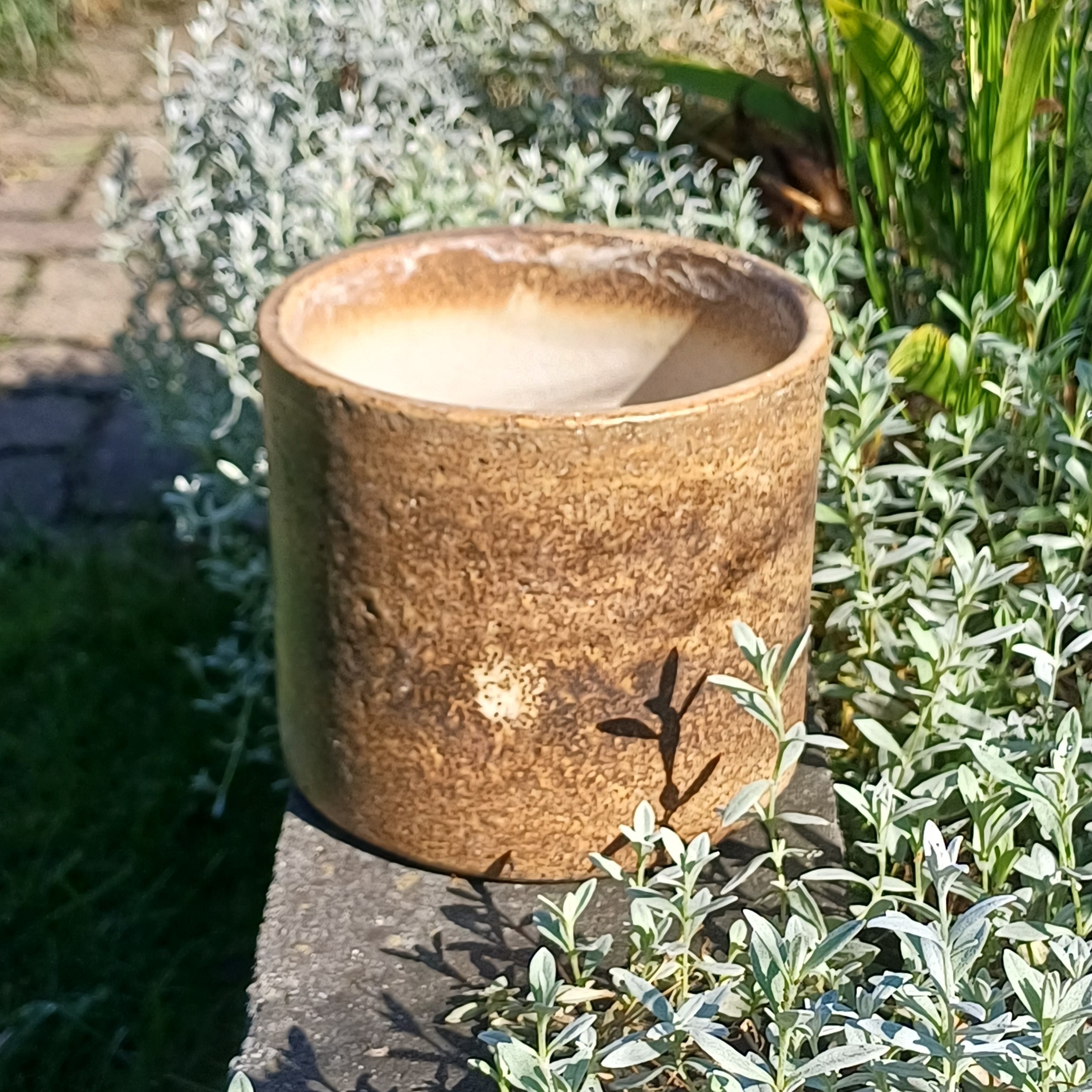 Vintage bloempot uit de jaren 70, in bruine tinten met een mooie structuur. In goede vintage staat.