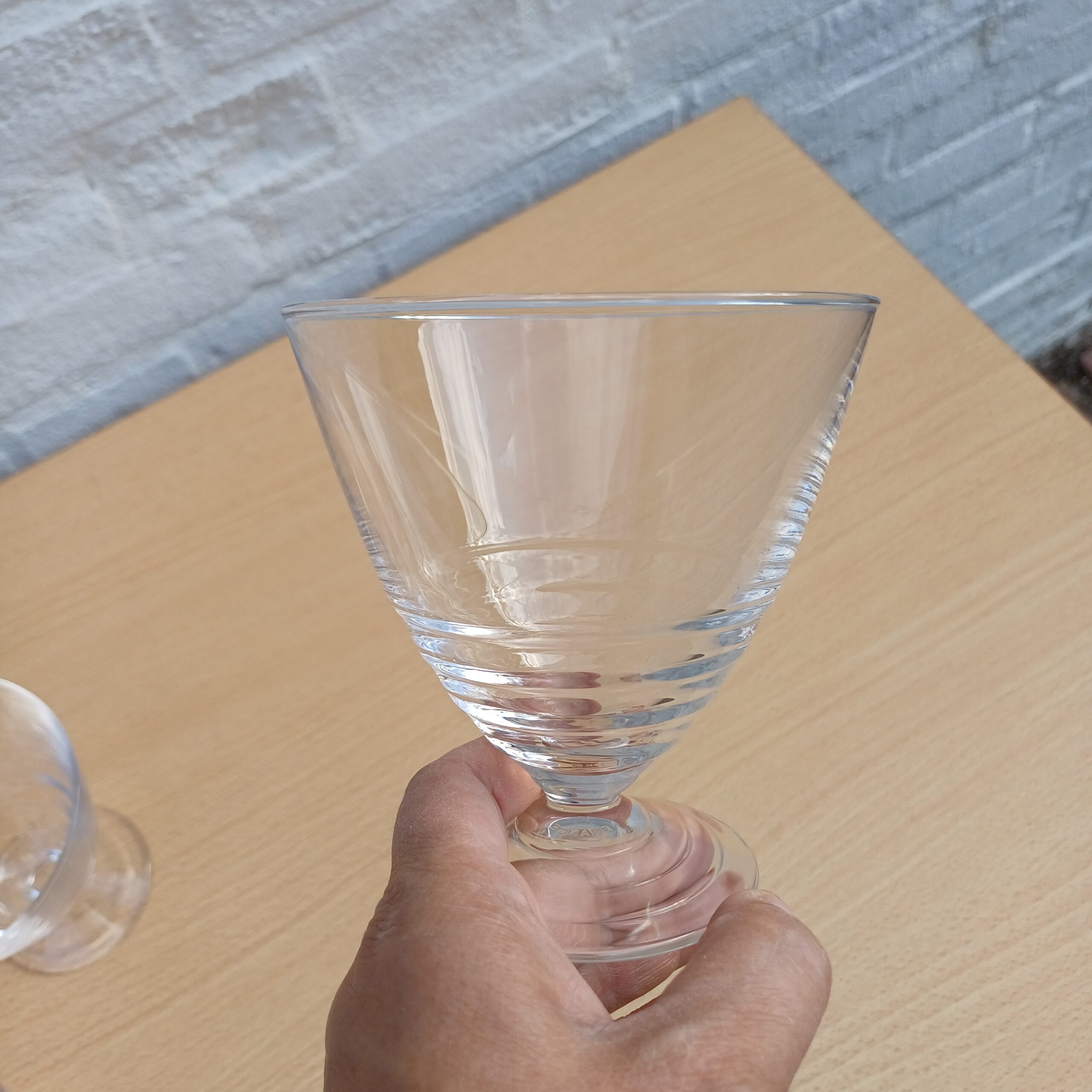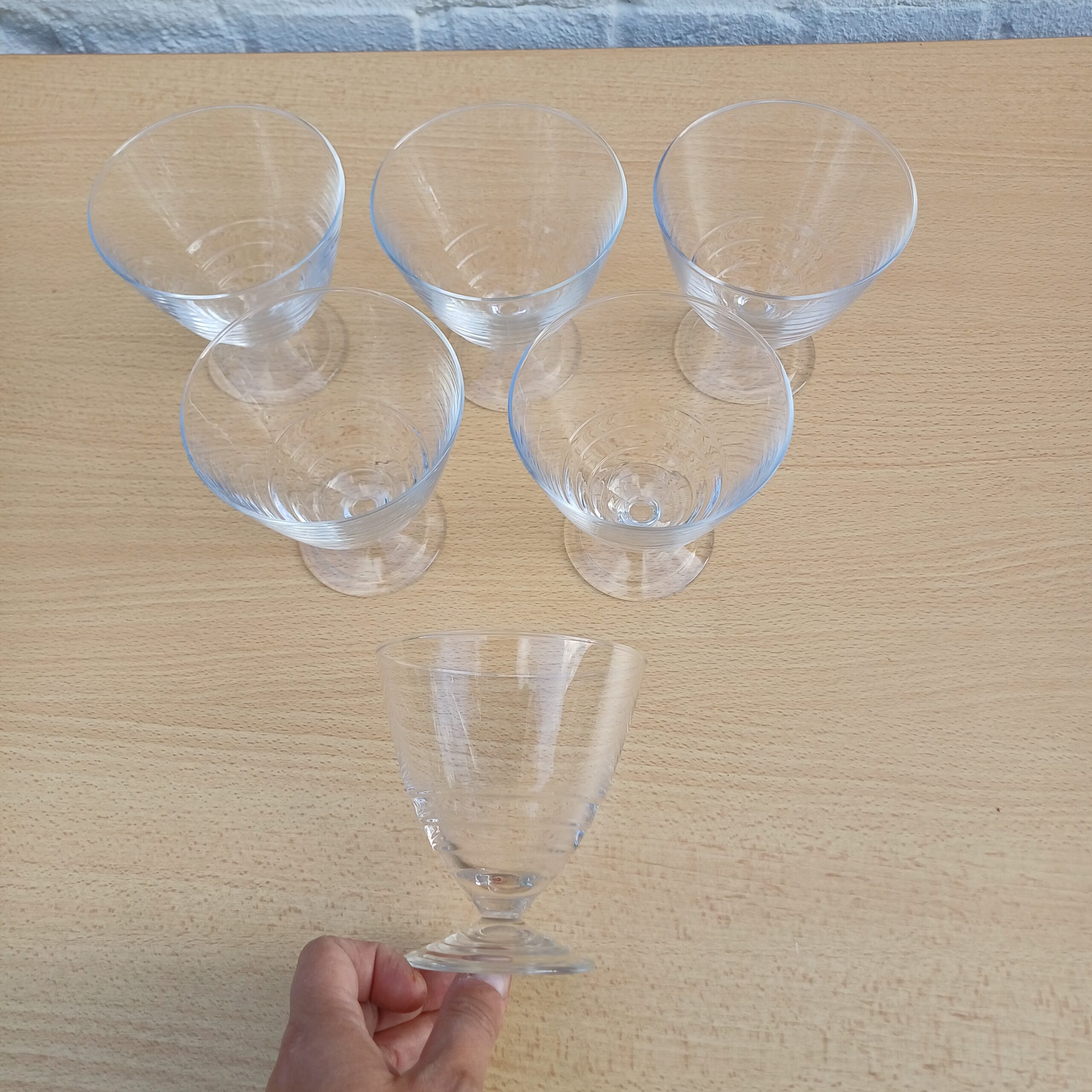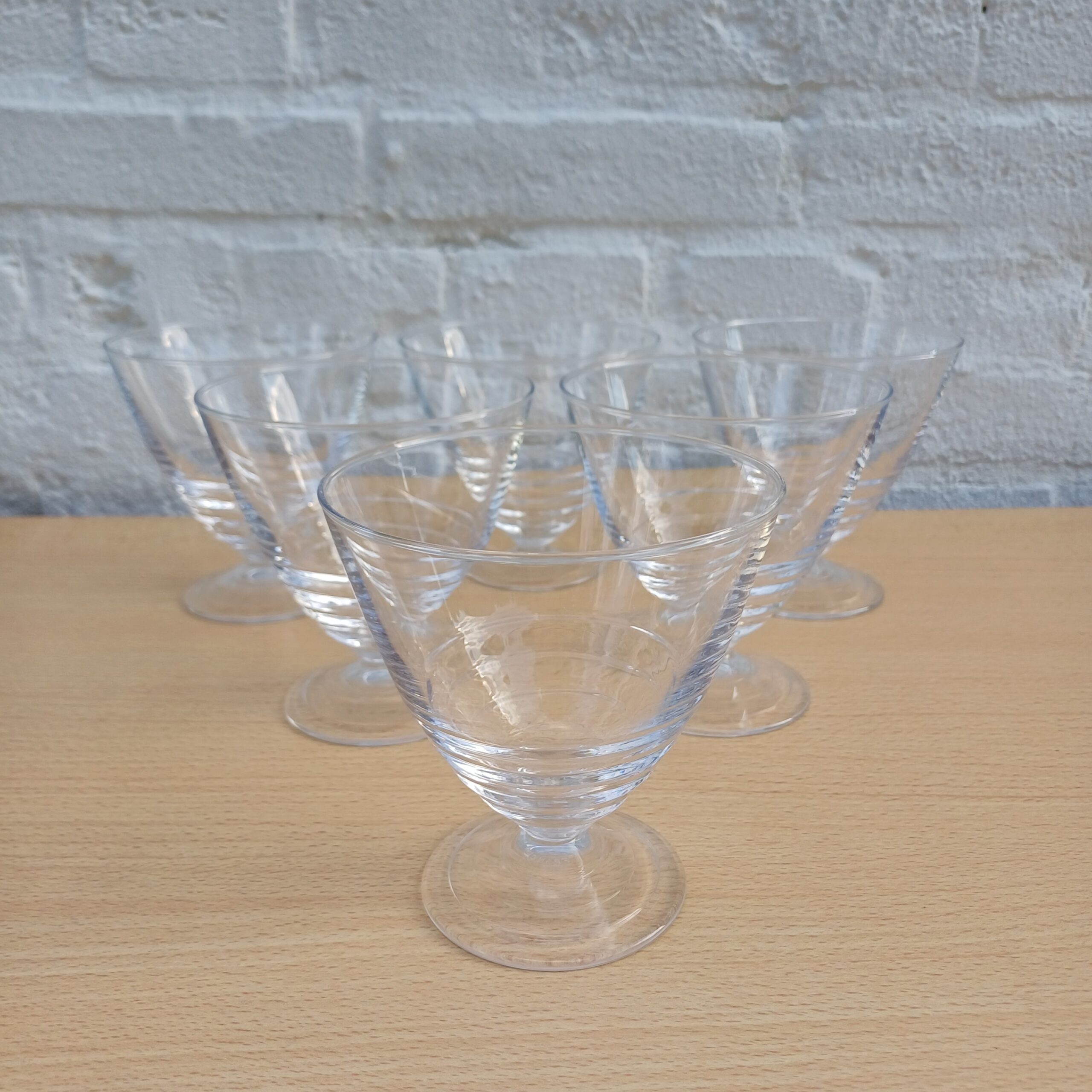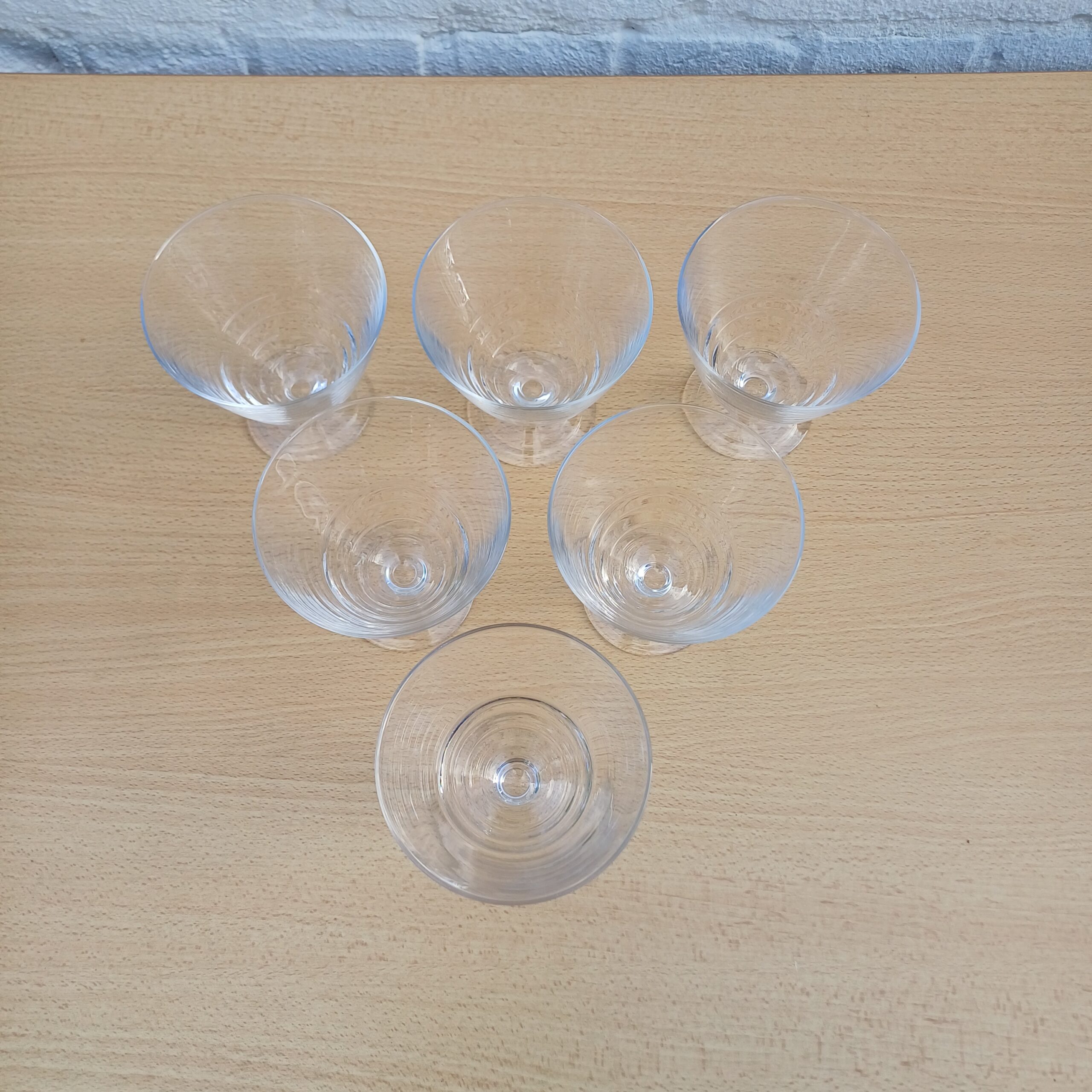 Supermooie glazen ijscoupes, met een subtiel maar elegant bewerkte onderzijde van het glas. Set van 6 stuks.