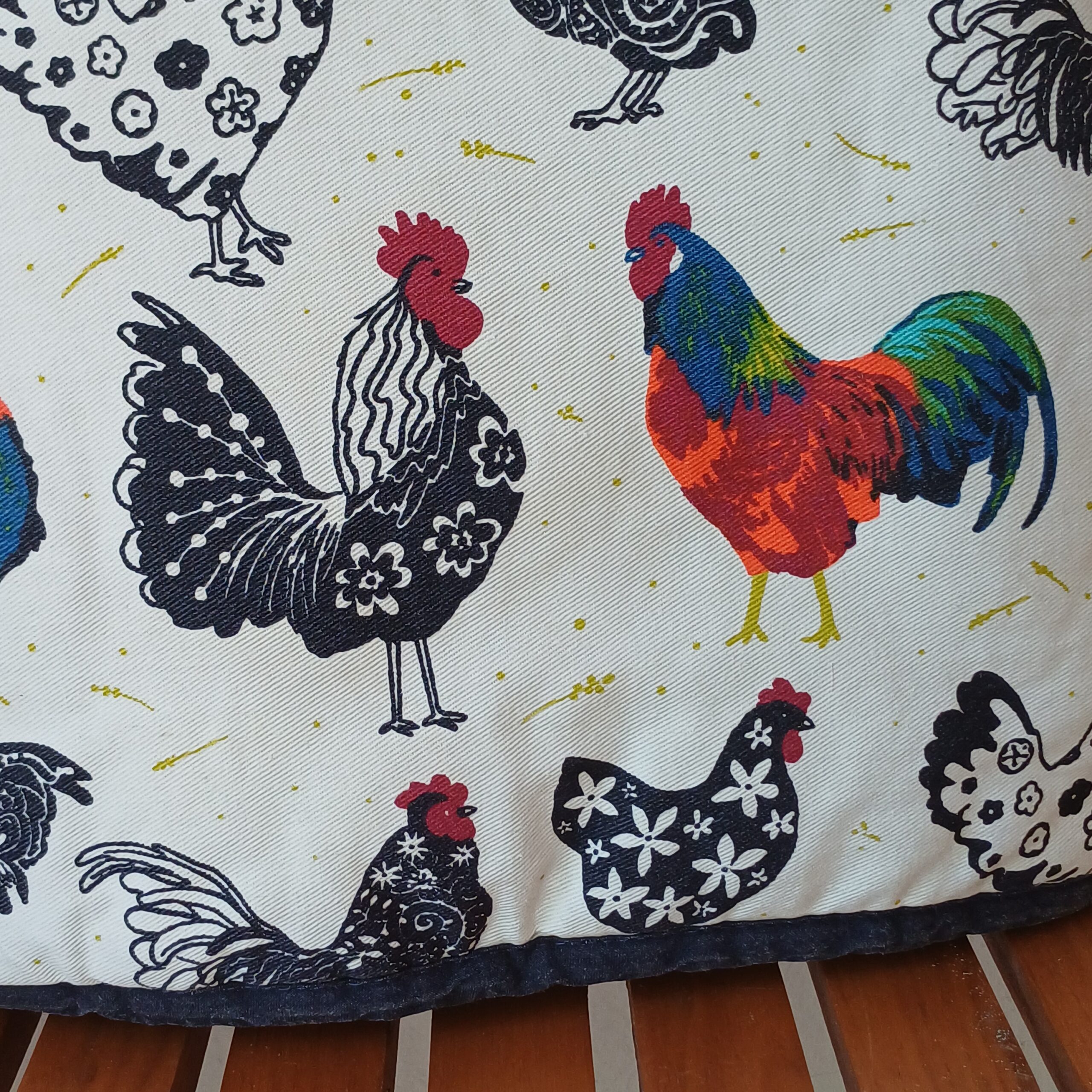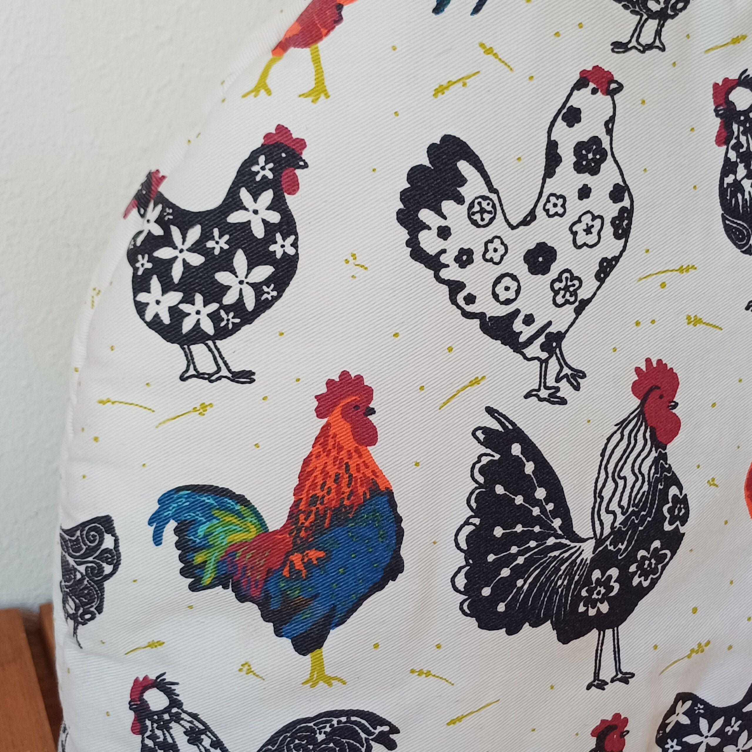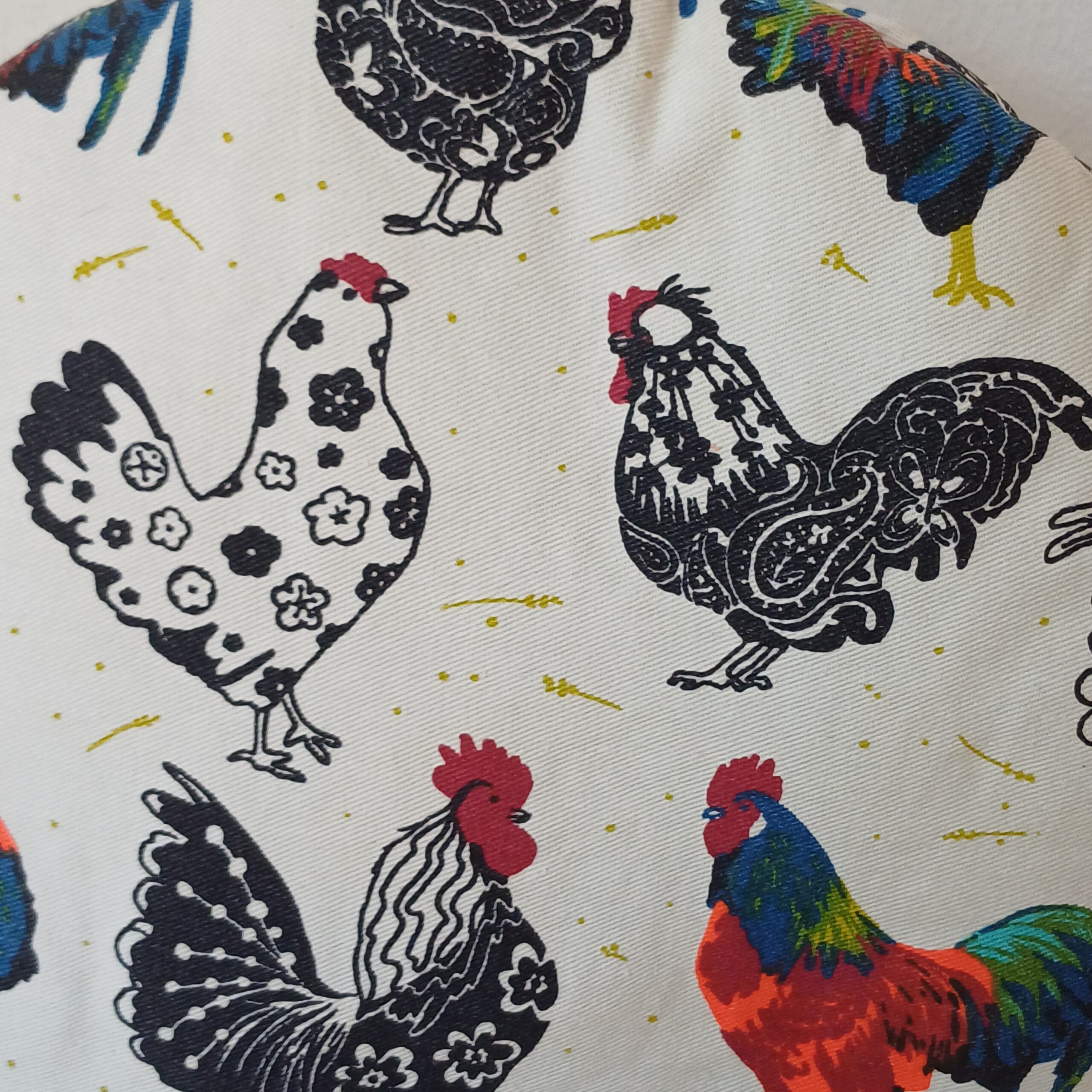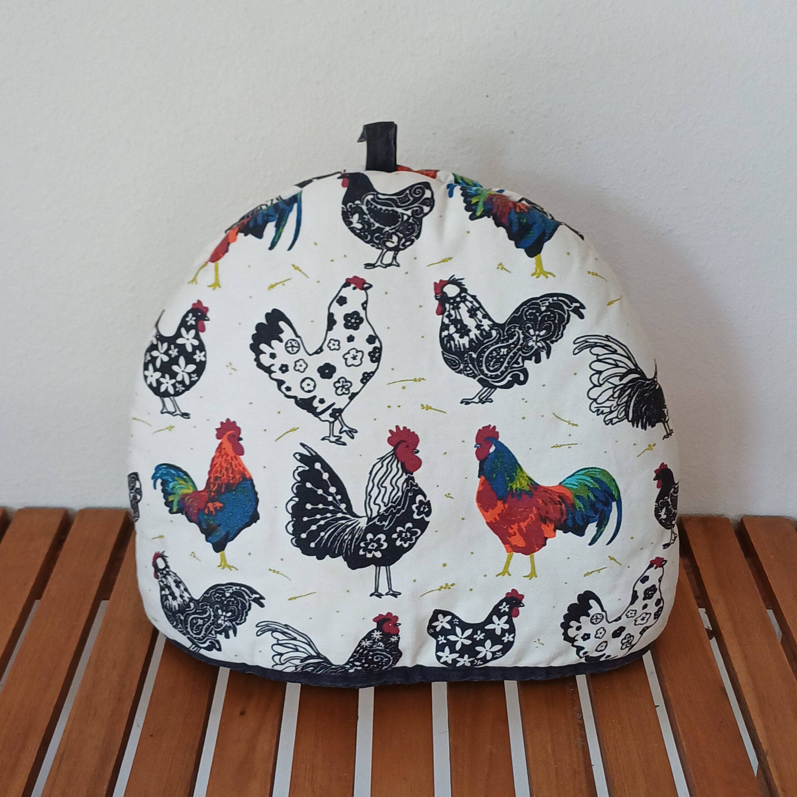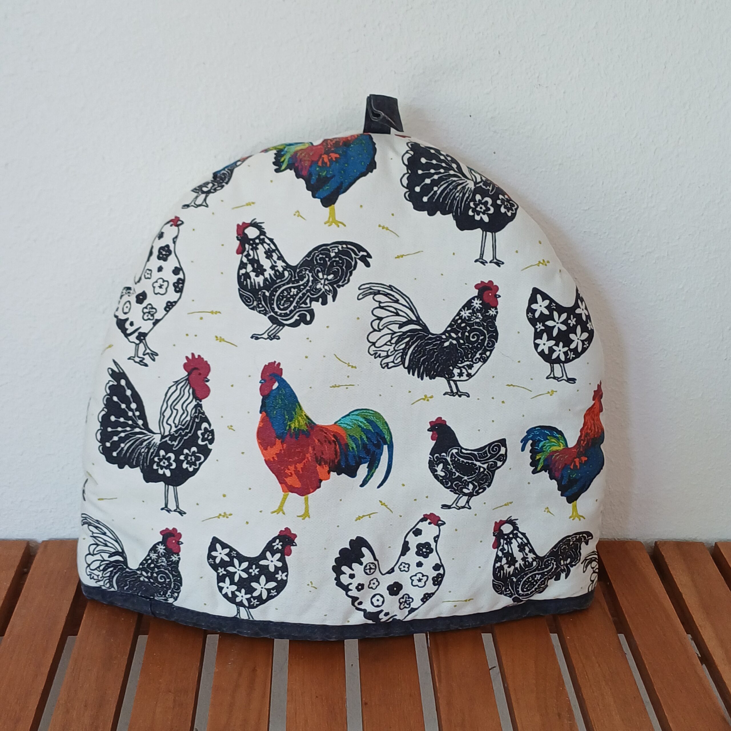 Leuk theemuts met decoratie van allerlei verschillende kippen en hanen. Ook aan de binnenkant.