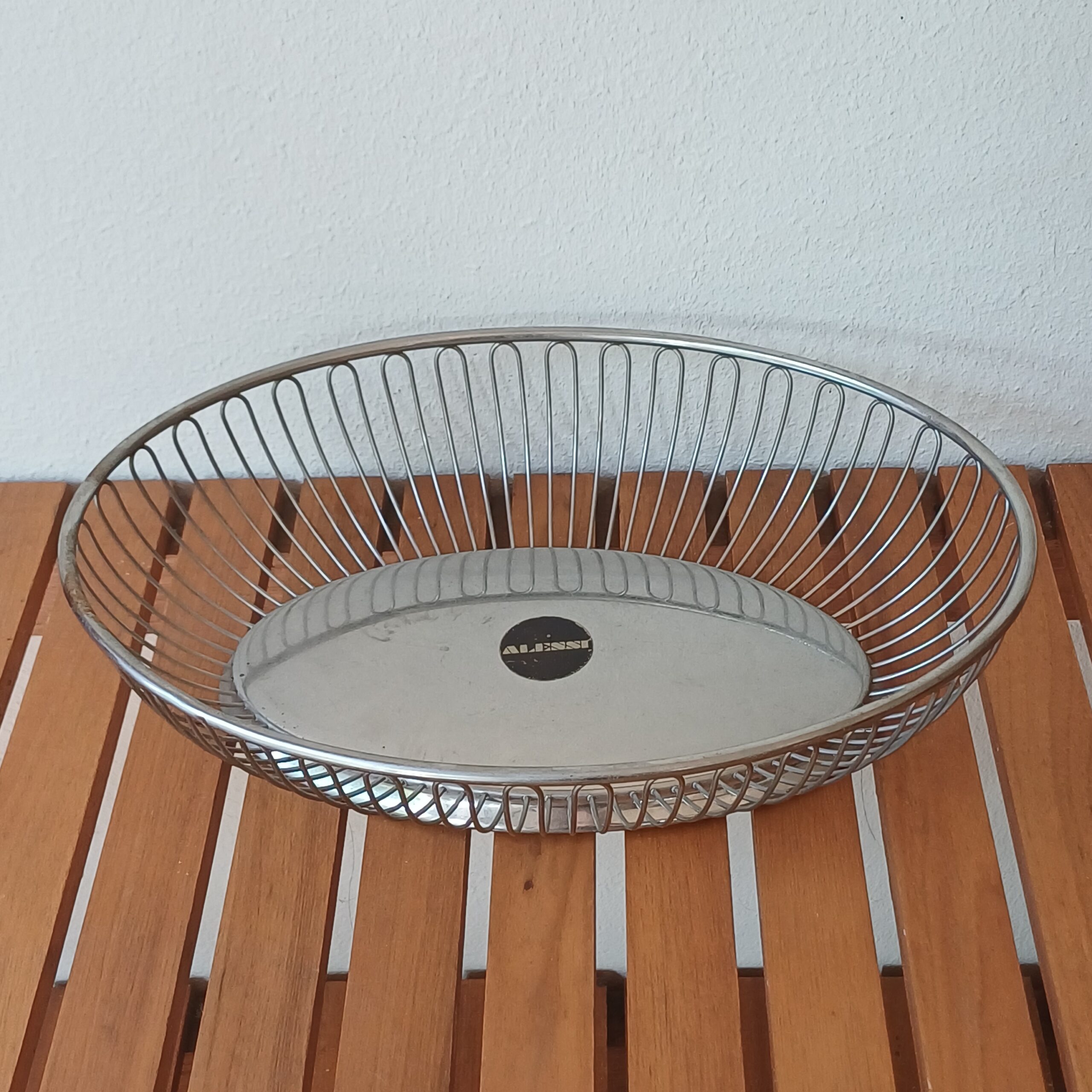 Iconische Alessi draadmand, ovaal model. Gemaakt in de jaren zestig, werd gebruikt als broodmandje. Gemerkt op de onderzijde; Alessi, Italy, inox 18/10.