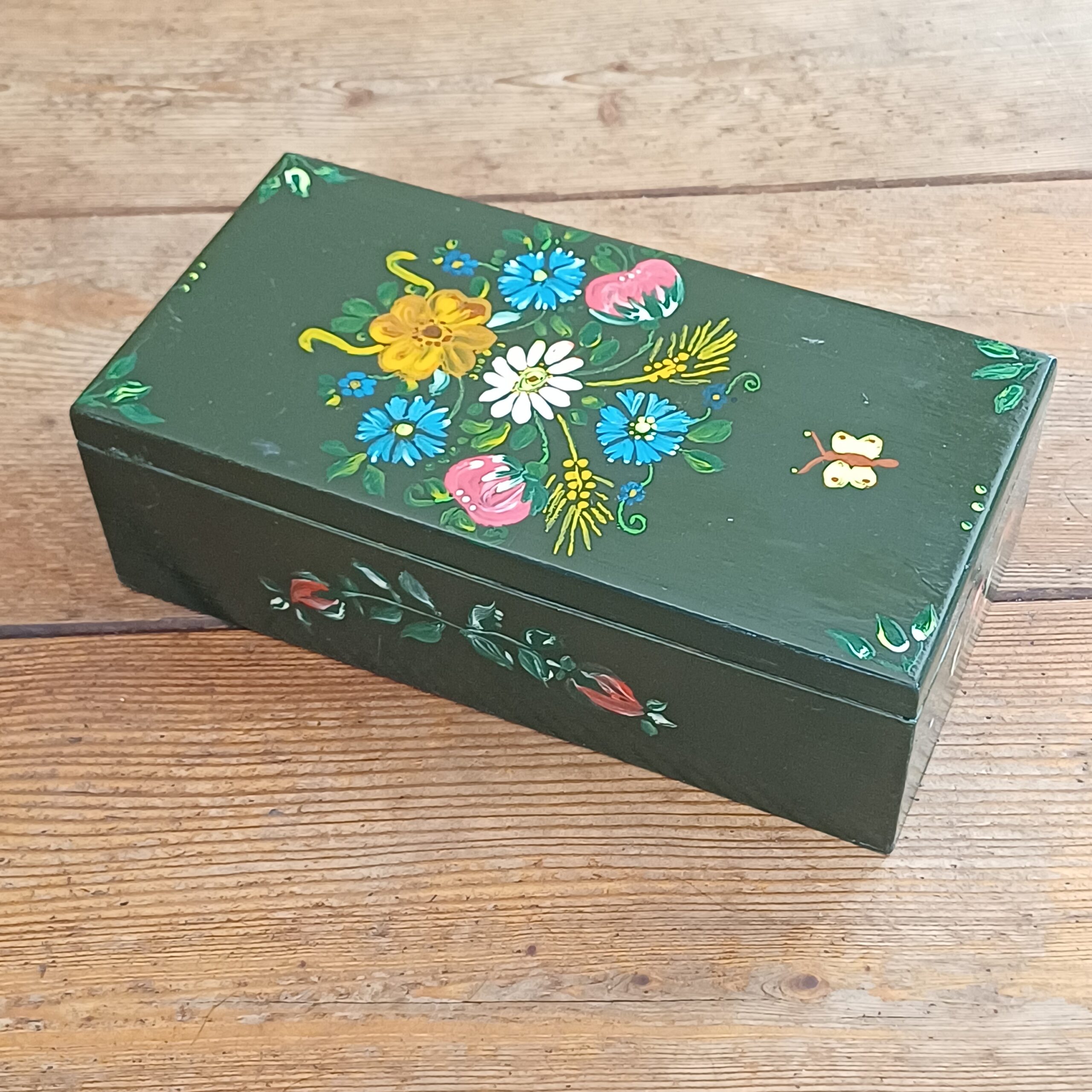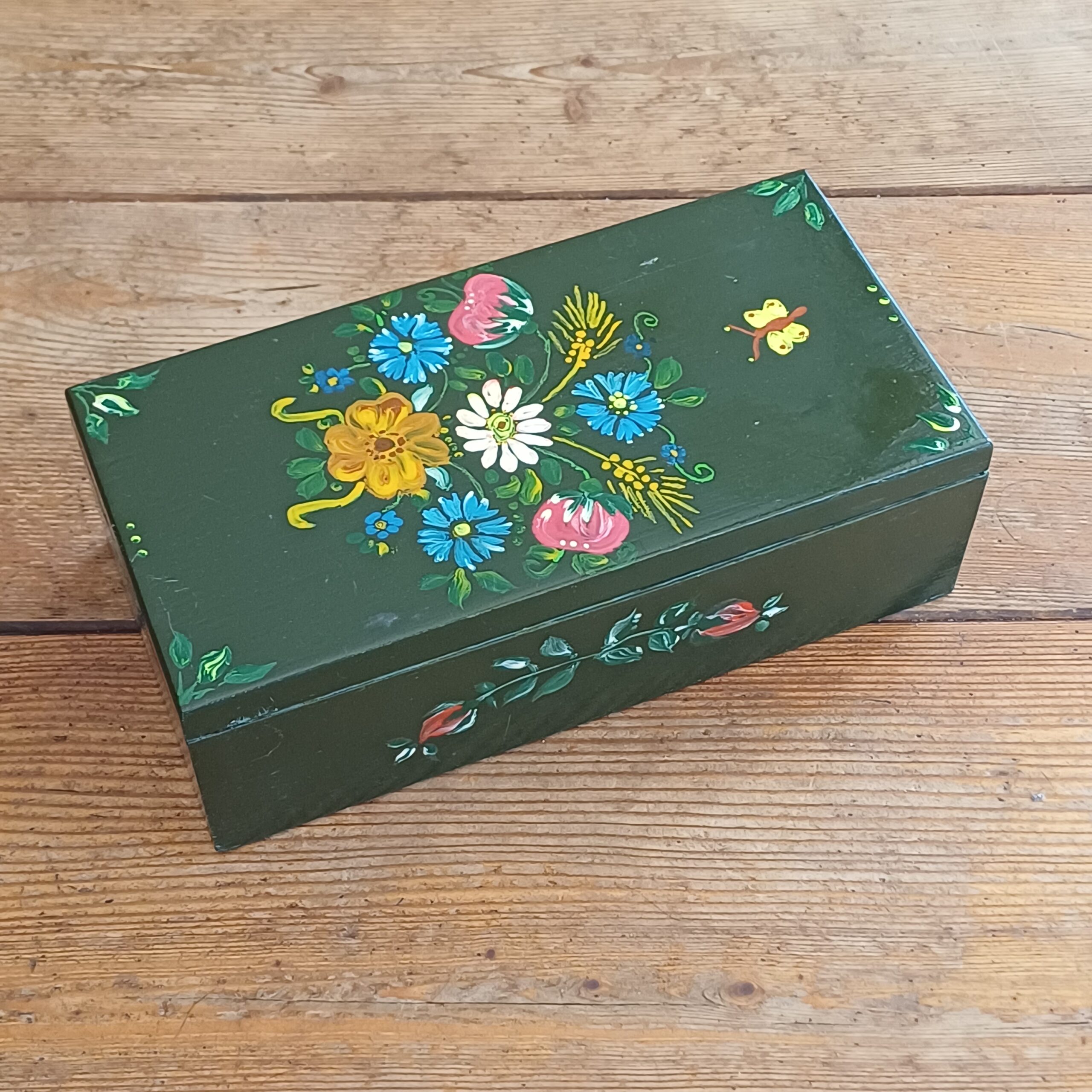 Leuk beschilderd houten doosje. Ideaal om spulletjes in te bewaren en leuk om neer te zetten.