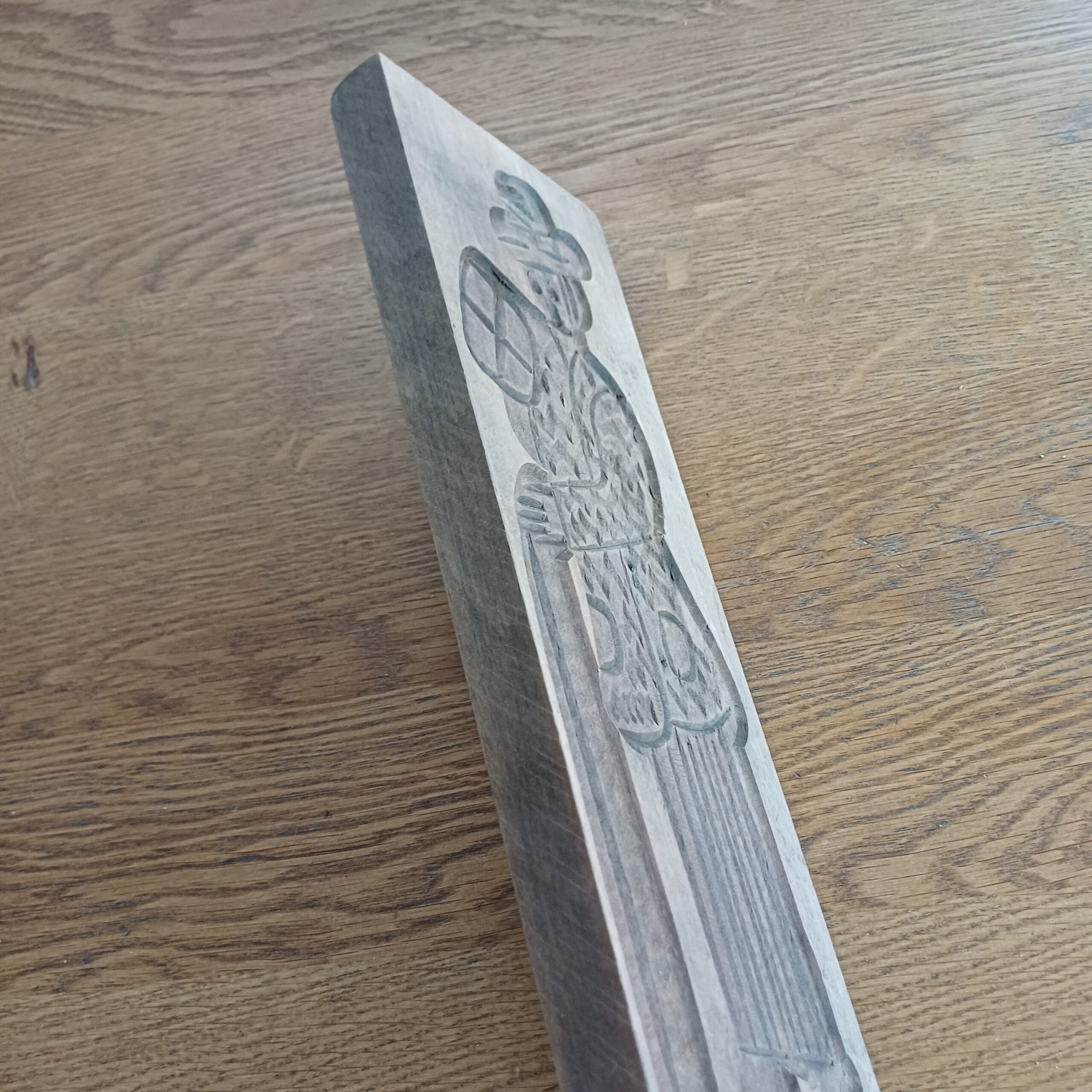 Ouderwetse gezelligheid! Deze speculaasplank is met de hand gemaakt en zit vol karakter. De vorm is diep uitgesneden en goed zichtbaar. Leuk om op te hangen in de keuken en ook nog steeds bruikbaar voor het bakken van speculaaspoppen.
