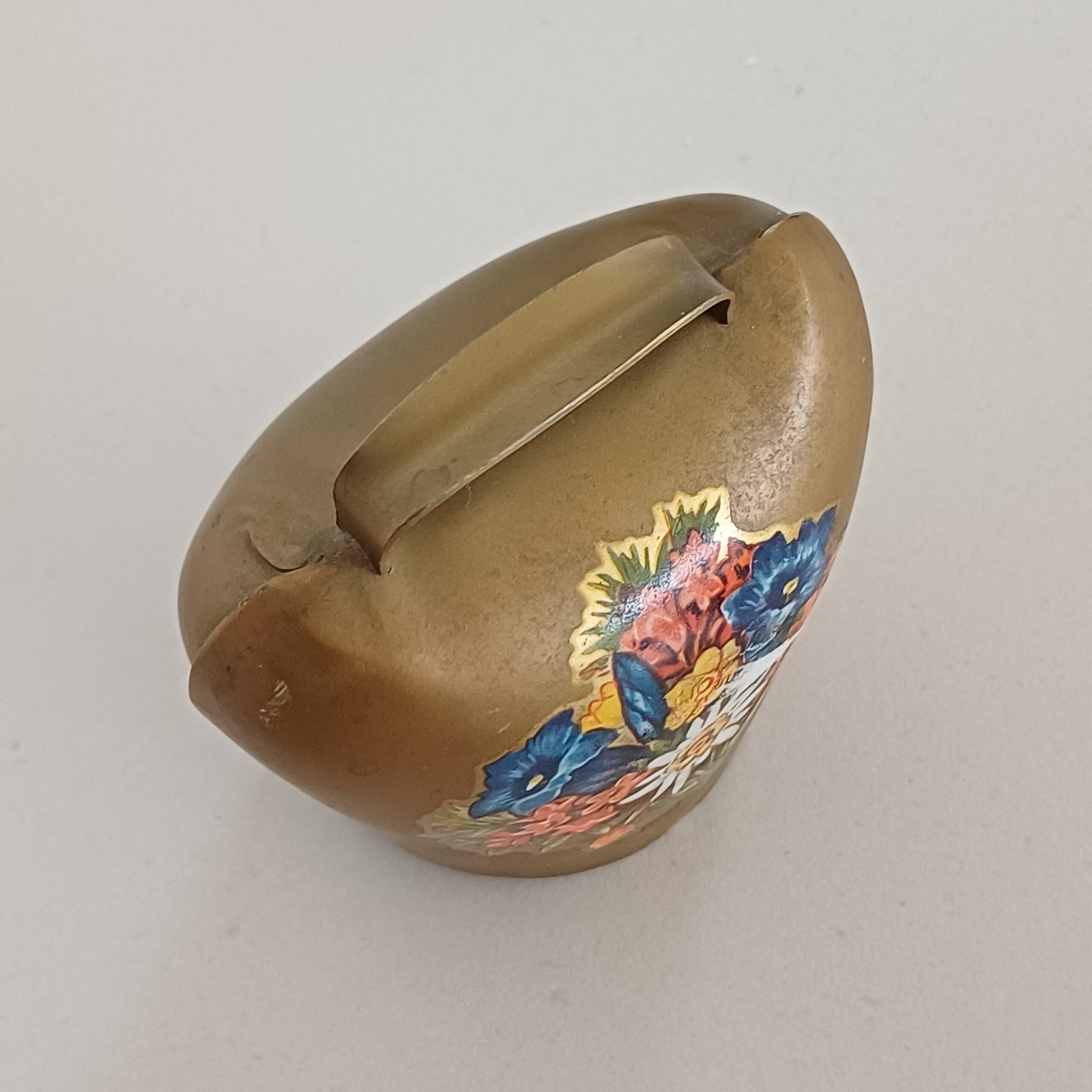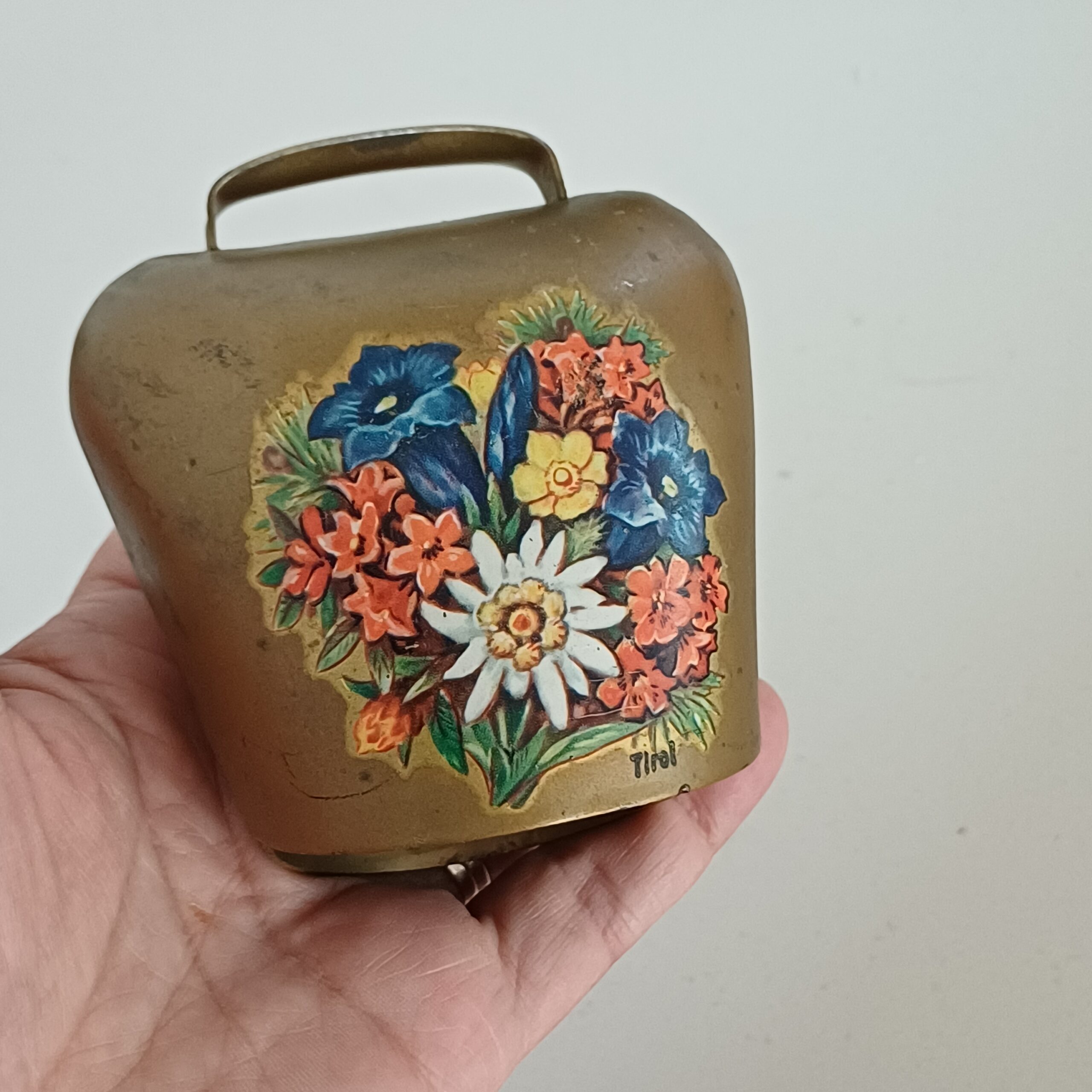 Leuke, met bloemen gedecoreerde koeienbellen van koper. De bellen geven een mooi geluid, De prijs is voor beide bellen samen.